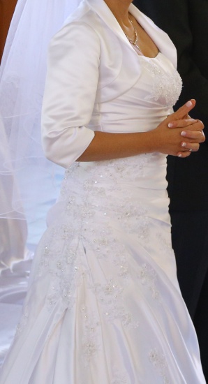 am do sprzedania rewelacyjną białą suknie ślubną wraz z bolerkiem 3/4.